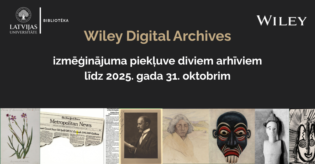 LU lietotājiem līdz 2025. gada 31. oktobrim nodrošināta izmēģinājuma piekļuve divām Wiley Digital Archives pirmavotu kolekcijām – The Royal Anthropological Institute of Great Britain and Ireland un The New York Academy of Sciences.