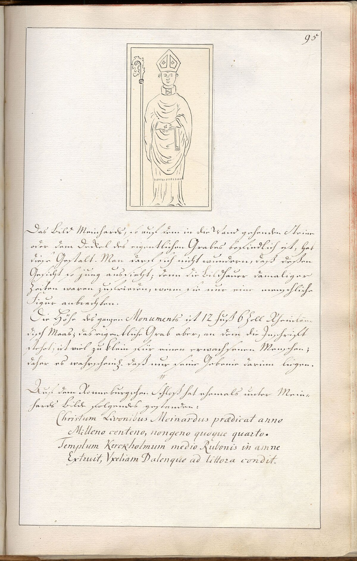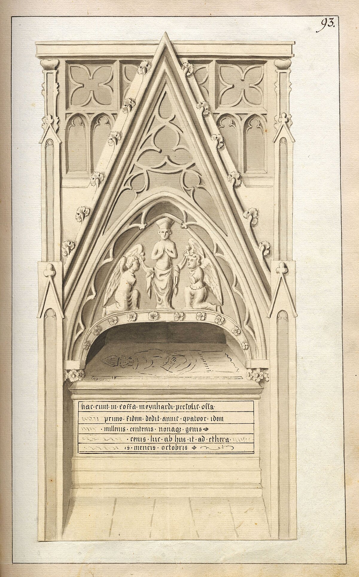 Īpašu uzmanību pelna arī Broces dokumentētais Sv. Meinarda kapa monuments Rīgas Doma baznīcā. Bīskapa Meinarda pīšļi Rīgas Domā tika pārapbedīti 14. gadsimtā, bet 1786. gadā baznīcas remontdarbu laikā šis gotiskais dekors tika iznīcināts. Taču Broce jau ap 1770. gadu bija rūpīgi uzzīmējis akmenī kalto Meinarda pieminekli kopskatā un 1786. gadā, neilgi pirms baznīcas remontdarbiem, bija paspējis monumentu uzmērīt, uzzīmēt, aprakstīt, kā arī atšifrēt iekaltos uzrakstus. Pateicoties Broces rūpīgajam darbam, 1896. gadā arhitekta Vilhelma Neimaņa vadībā bija iespējams rekonstruēt Meinarda monumentu.