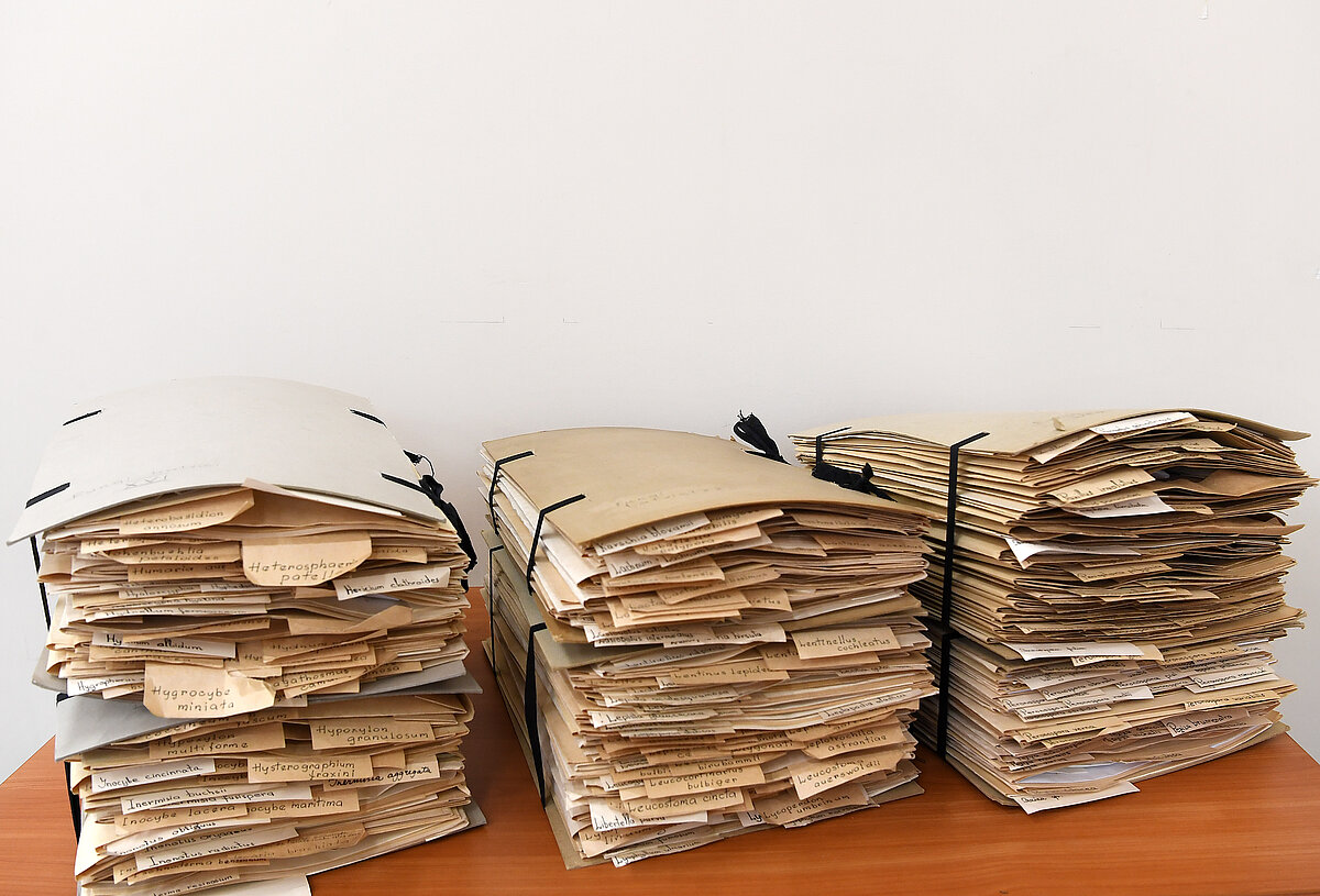 Neliela daļa no E.Vimbas sēņu herbārija mapēm. Foto: LU Muzeja krājums, Sarmīte Livdāne 21.10.2025