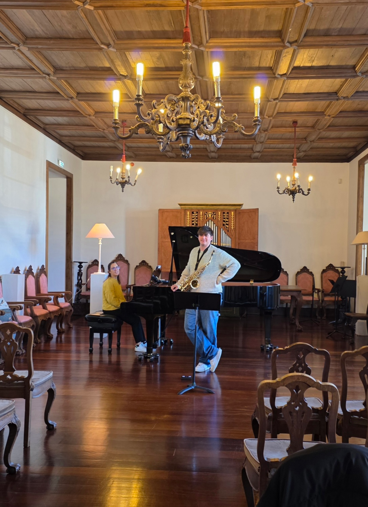 Minho Universitātē LU delegāciju uzņēma Mūzikas departamenta direktors Vitors Igo Fereira de Matoss (Vítor Hugo Ferreira de Matos), ERASMUS projektu koordinators, muzikologs un pianists Andželu Martingu (Ângelo Martingo) un Minho Universitātes orķestra mākslinieciskais vadītājs, saksofonists Antonio Luīš RIbeiro (António Luís Ribeiro). Tikšanās laikā LU pārstāvji padziļināti iepazinās ar Mūzikas departamenta darbību, universitātes studentu kolektīviem, to radošajām aktivitātēm un institūcijas attīstības stratēģiju.