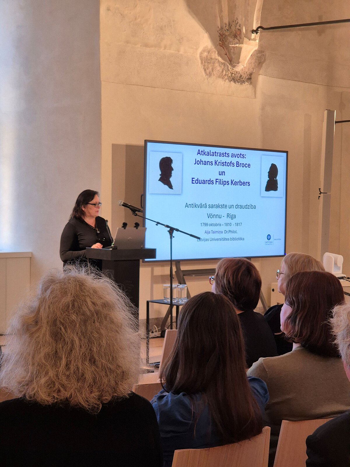 Starp referentiem piedalījās arī Latvijas Universitātes bibliotēkas Reto izdevumu un rokrakstu bibliotēkas “Bibliotheca Rigensis” galvenā bibliotekāre Dr. philol. Aija Taimiņa. Viņa seminārā uzstājās ar priekšlasījumu “Johana Kristofa Broces un Eduarda Filipa Kerbera Antikvārā sarakste: atkalatrasts vēstures avots”, iepazīstinot klausītājus ar nozīmīgu un līdz šim mazāk pētītu materiālu, kas glabājas Tartu, Igaunijas Literatūras muzejā.