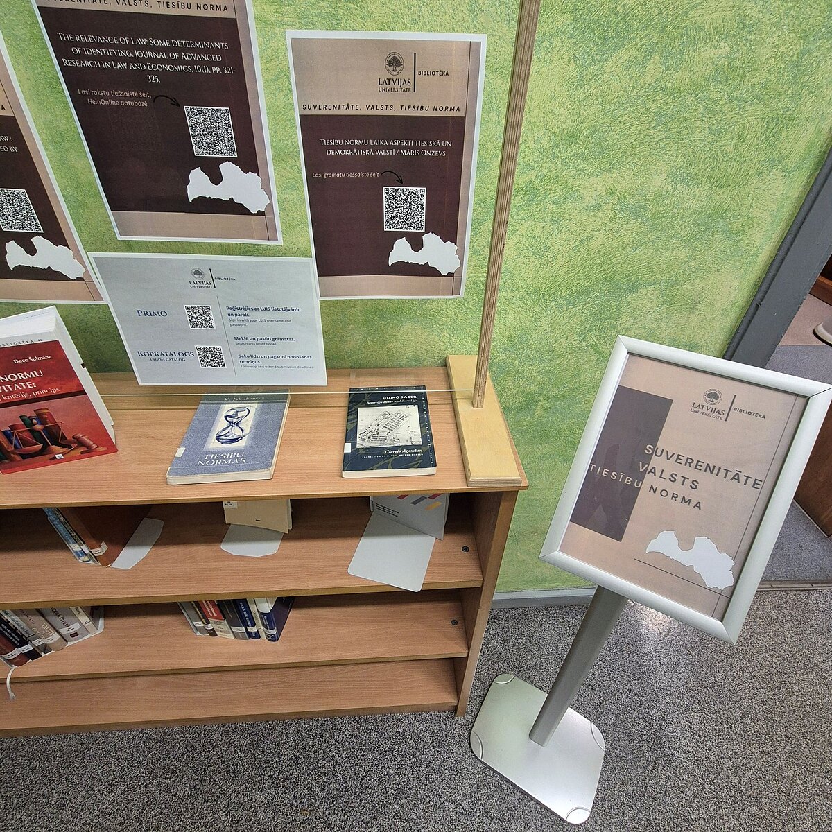 Latvijas Universitātes Bibliotēkā Raiņa bulvārī apskatāma neliela, īslaicīga grāmatu izstāde, tā aicina ielūkoties suverenitātes, valsts un tiesību normu jautājumos. Izstādē izlikta tikai daļa no bibliotēkas krājumā pieejamajiem resursiem. Izmanto Primo, kas nodrošina piekļuvi dažādiem informācijas resursu veidiem no vienas meklēšanas saskarnes.