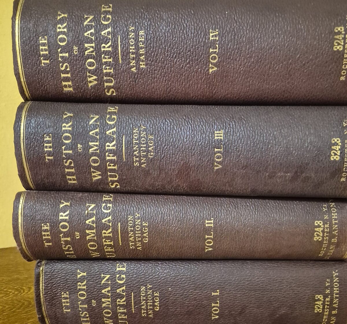 LU bibliotēkas krājumā ir pirmie četri “History of Woman Suffrage” sējumi (1881–1902). Ikdienā tie glabājas LU bibliotēkas Krātuvē, un bibliotēkas lietotājiem ir pieejami iepriekš pasūtot uz sev ērtāko bibliotēku.